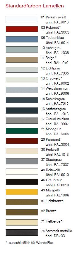 - 18 Standardfarben für Lamellen und mehr als 650 Farben für Gestelle und Kästen.